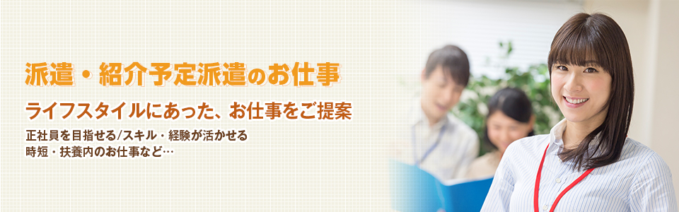 事務系をはじめ、販売、軽作業系など幅広い職種の求人を取り扱っており、未経験でもチャレンジ可能な求人も多数あります。