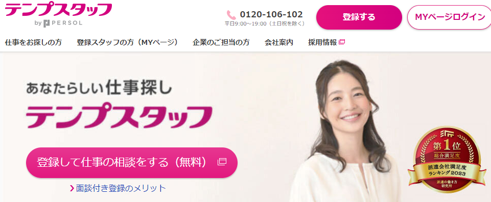 テンプスタッフは、パーソルテンプスタッフが運営する事務職の求人に強い派遣会社です。大手企業をメインに、未経験OKの一般事務からスキルを活かした高時給の専門事務など幅広く取り扱っています。