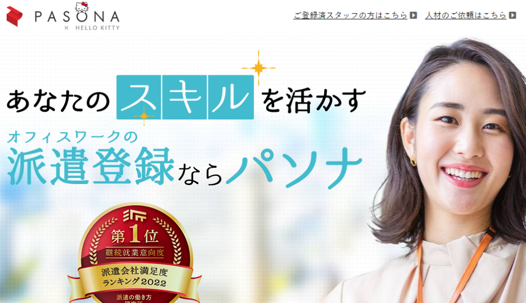 パソナは40年以上の歴史を持つオフィスワークの求人がメインの派遣会社です。