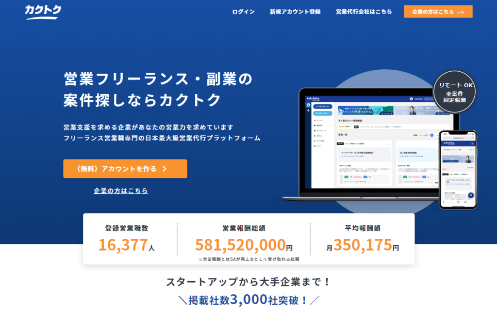 kakutoku(カクトク)は、15,000人以上の営業人材が登録する、営業代行専門のプラットフォームです。
