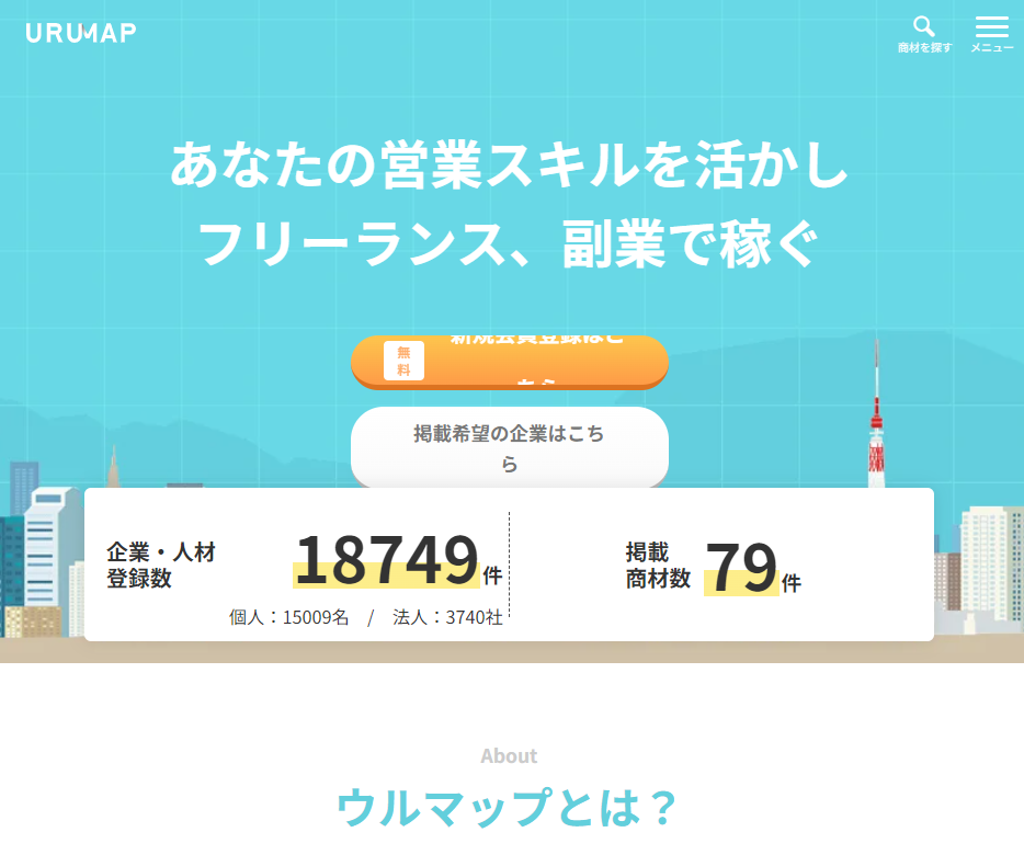 ウルマップは、利用者数14,000名以上、利用企業数3,700社以上の、フリーランス営業・副業向けの案件マッチングサービスです。