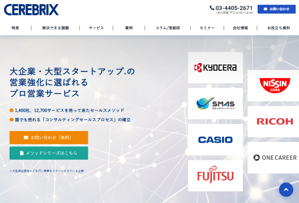 リクルートなどの大手企業からスタートアップまで、BtoB事業の営業支援実績豊富なプロ集団が、あなたに合ったインサイドセールスをコンサルティングいたします。