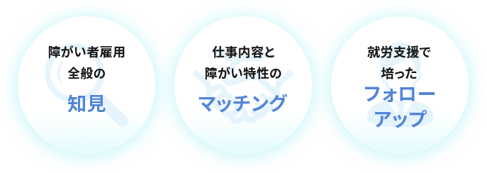 障がい者の集客や採用から雇用定着まで多くのお悩み、ご相談をいただきます。